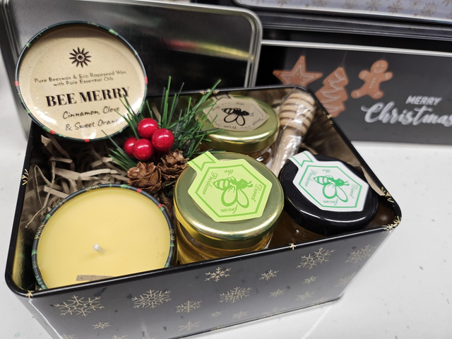 Christmas Gift Set (Honey & Essential Oil Tin Candle)