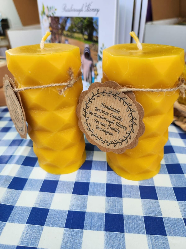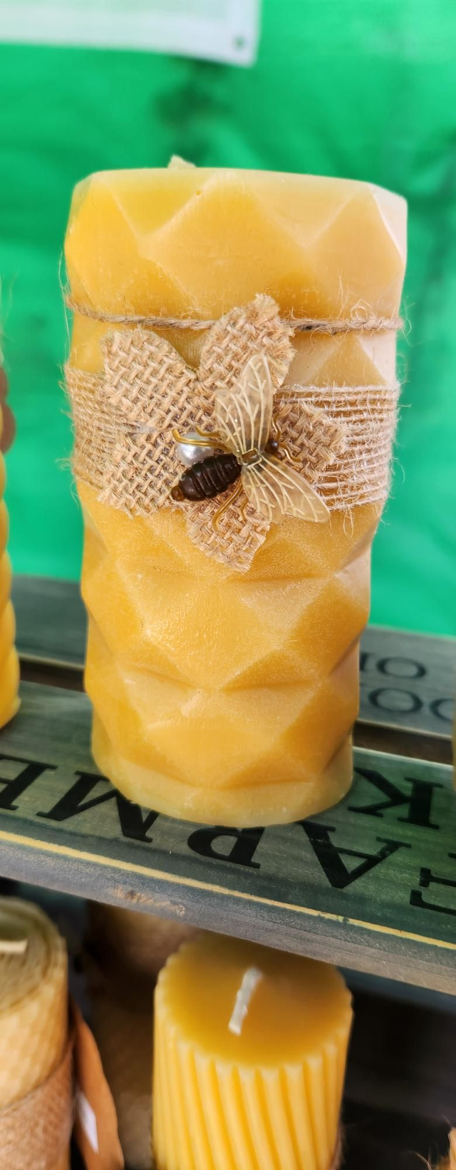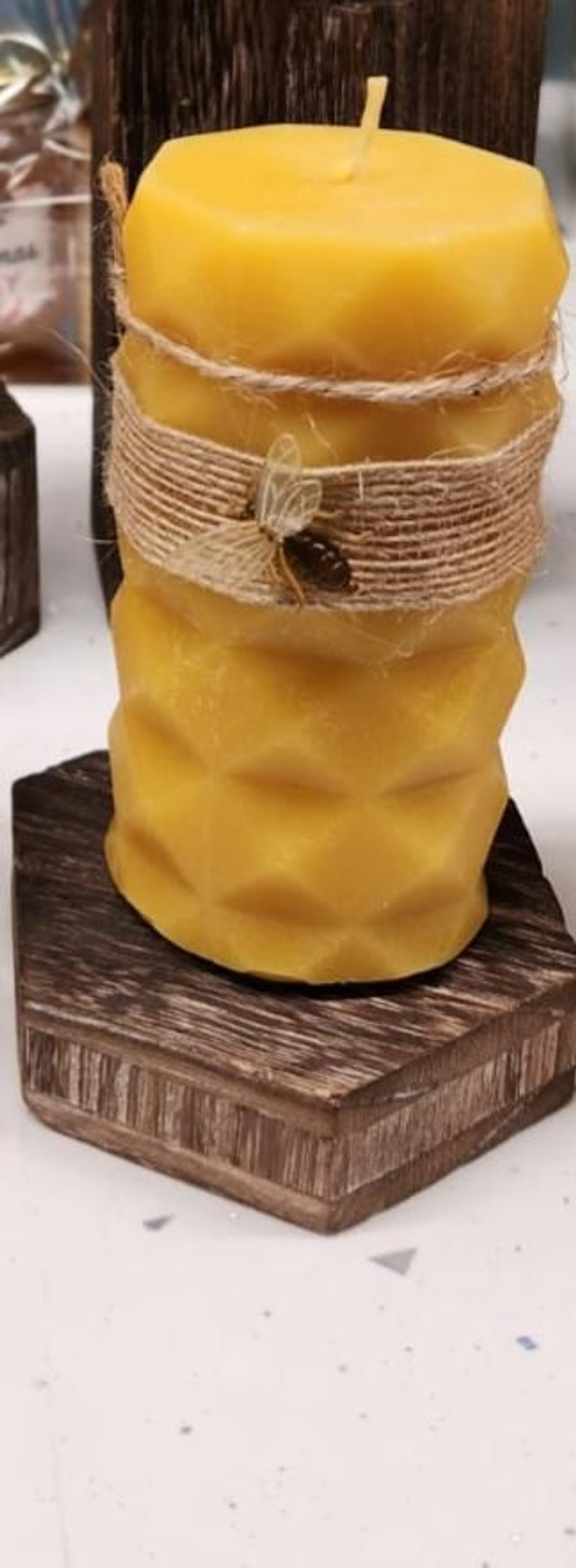 Handmade using 100% Pure beeswax with a Diamond pattern and braided cotton wick.