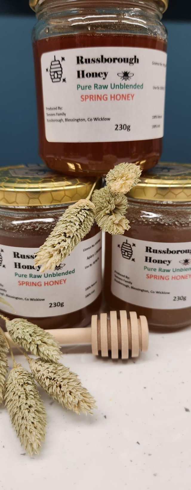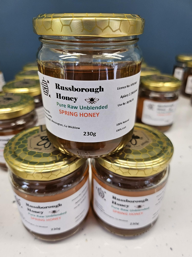 Raw Irish Spring Blossom Honey, produced by our Bees in Wicklow & Kildare during the Spring months.