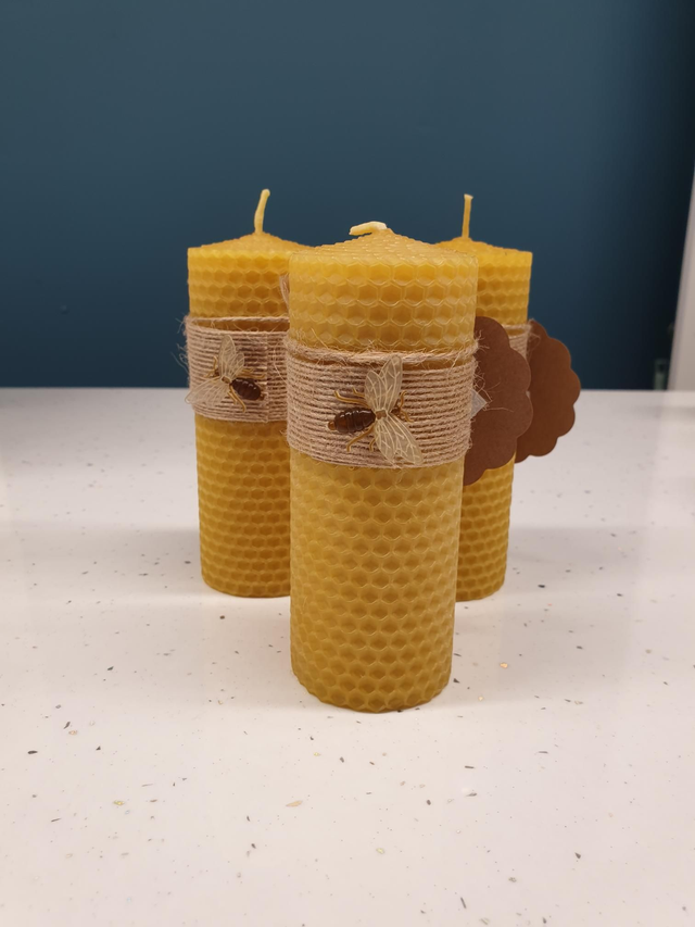 Pure Beeswax Hand Rolled Candles.